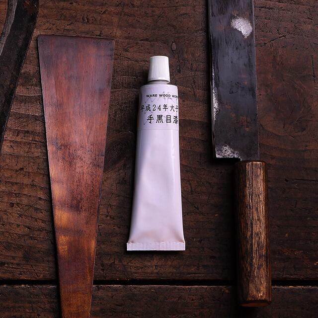 当工房で機械を使わずに手作業で精製しました。透明度の高い飴色の漆です。